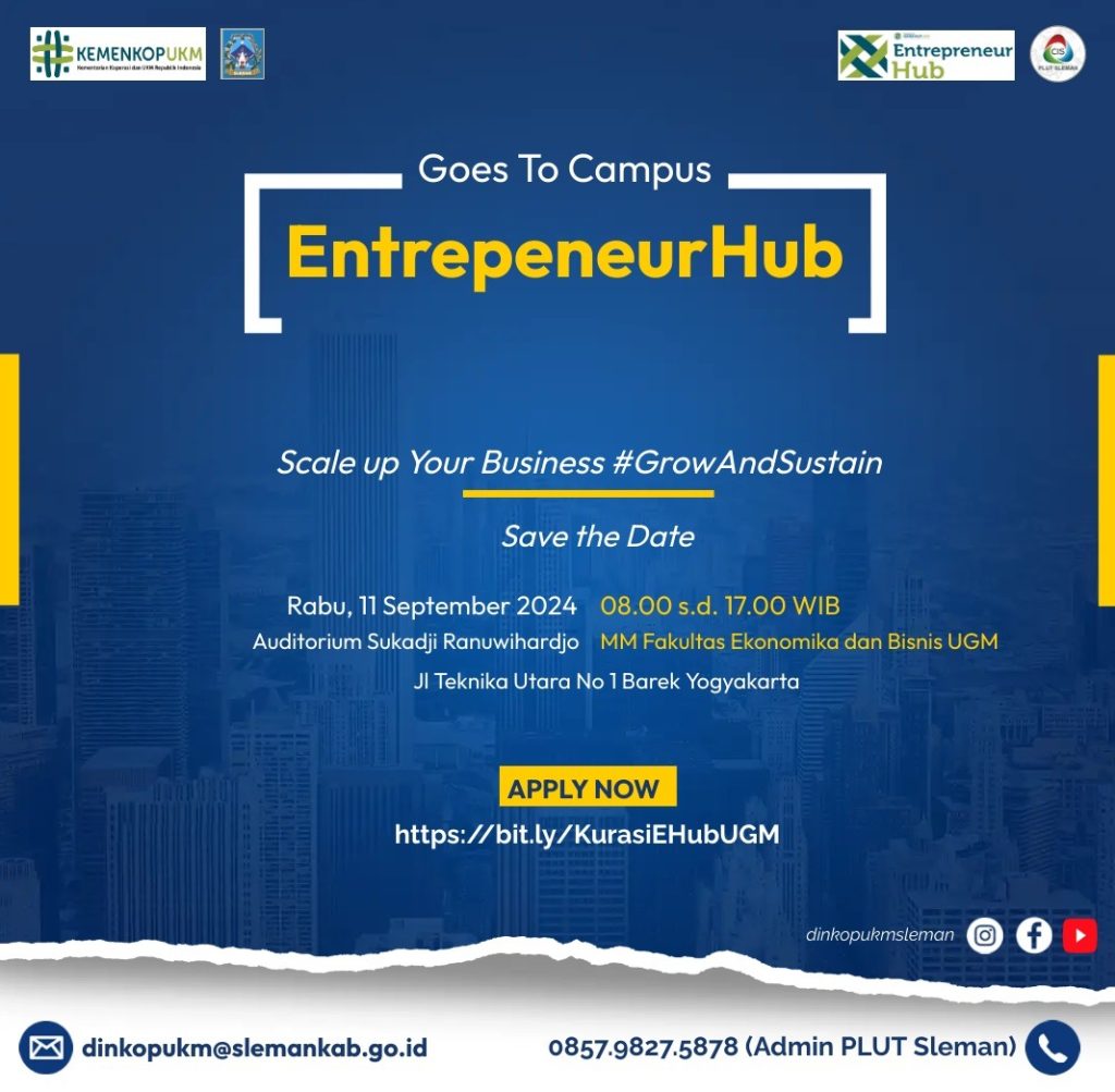 📅 Pendaftaran kegiatan EHub Goes To Campus : Universitas Gadjah Mada (Non-Civitas UGM) akan ditutup pada Jumat, 6 September 2024 Pukul 12.00 WIB, setelah itu akan ada proses KURASI/SELEKSI sesuai kriteria yang ada. Sobat EHub yang LOLOS KURASI akan dihubungi oleh Tim Entrepreneur Hub lebih lanjut 📱